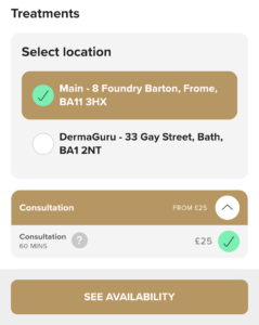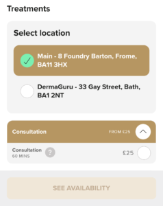 Select Consultation (for example) and SEE AVAILABILITY to continue