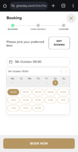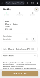 Confirm the address and service is correct (you can add further treatments at this stage) and proceed to pick your appointment time/date